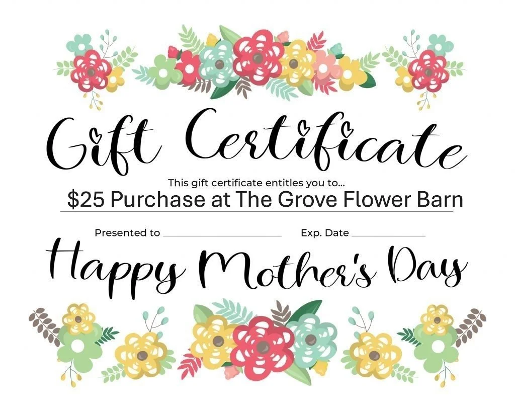 Give the Gift of Blooms with a gift certificate for our flower barn.